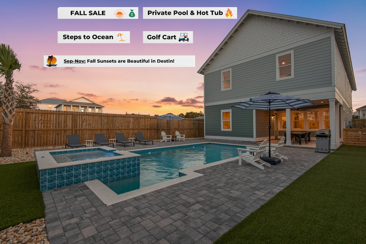 Luxe Beach House/Sleeps 26/Pool/Hot Tub/Golf Cart